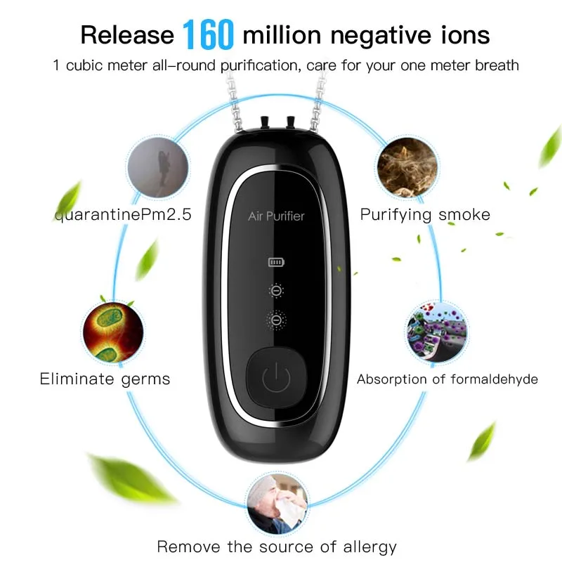 1.พกติดตัวไปด้วย: เนื่องจากเครื่องฟอกอากาศขนาดเล็กนี้มาพร้อมกับเชือกเส้นเล็ก จึงสามารถสวมไว้รอบคอและปกเสื้อได้ในระหว่างการเดินทาง ในที่สาธารณะหรือสถานที่อื่นๆ ที่มีคุณภาพอากาศไม่ดี การสวมเสื้อผ้าประเภทนี้สามารถสร้างพื้นที่ที่มีอากาศบริสุทธิ์ได้