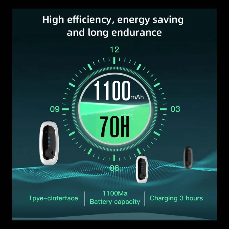 2.ใช้งานได้ยาวนาน: สามารถชาร์จได้ 2 ชั่วโมง และสามารถใช้งานได้ประมาณ 30-60 ชั่วโมงเพื่อให้อากาศบริสุทธิ์