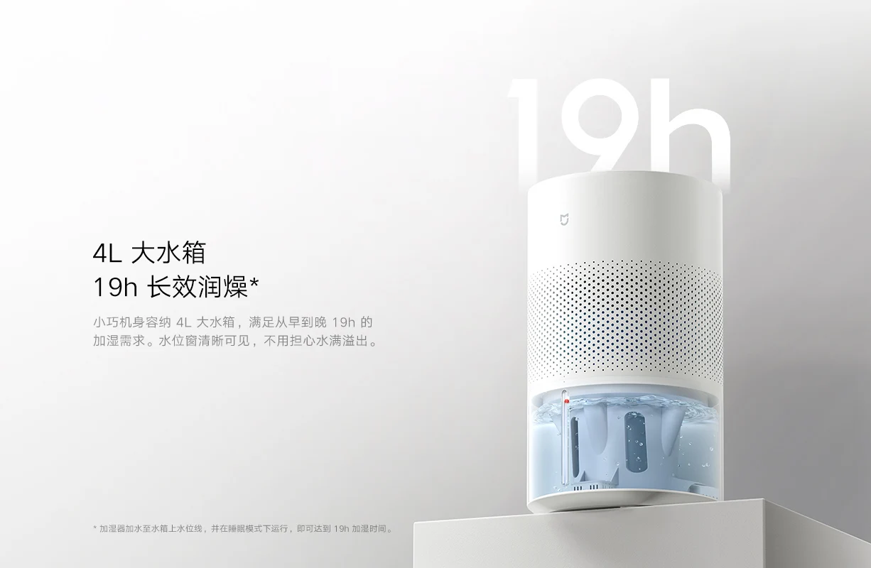 * Large Water Tank: Despite its compact size, it features a 4L large water tank that can provide 19 hours of continuous humidification. The water level is easily visible.