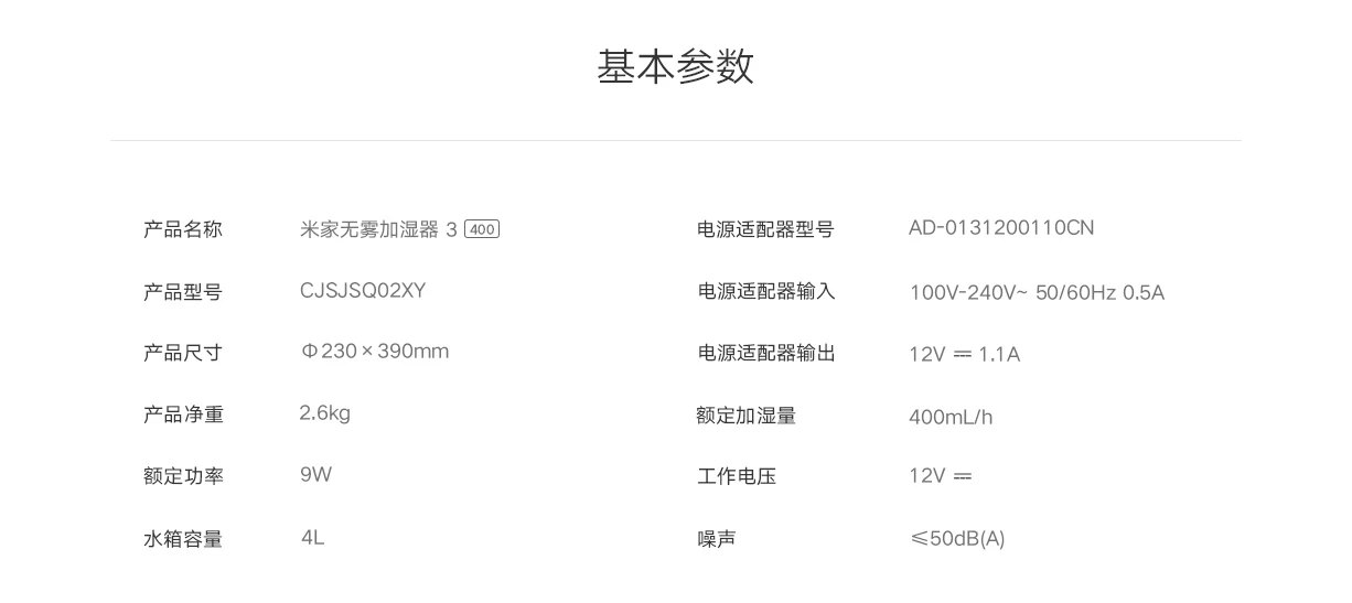 XIAOMI MIJIA Mist Free Humidifier 3 (400) Main Feature